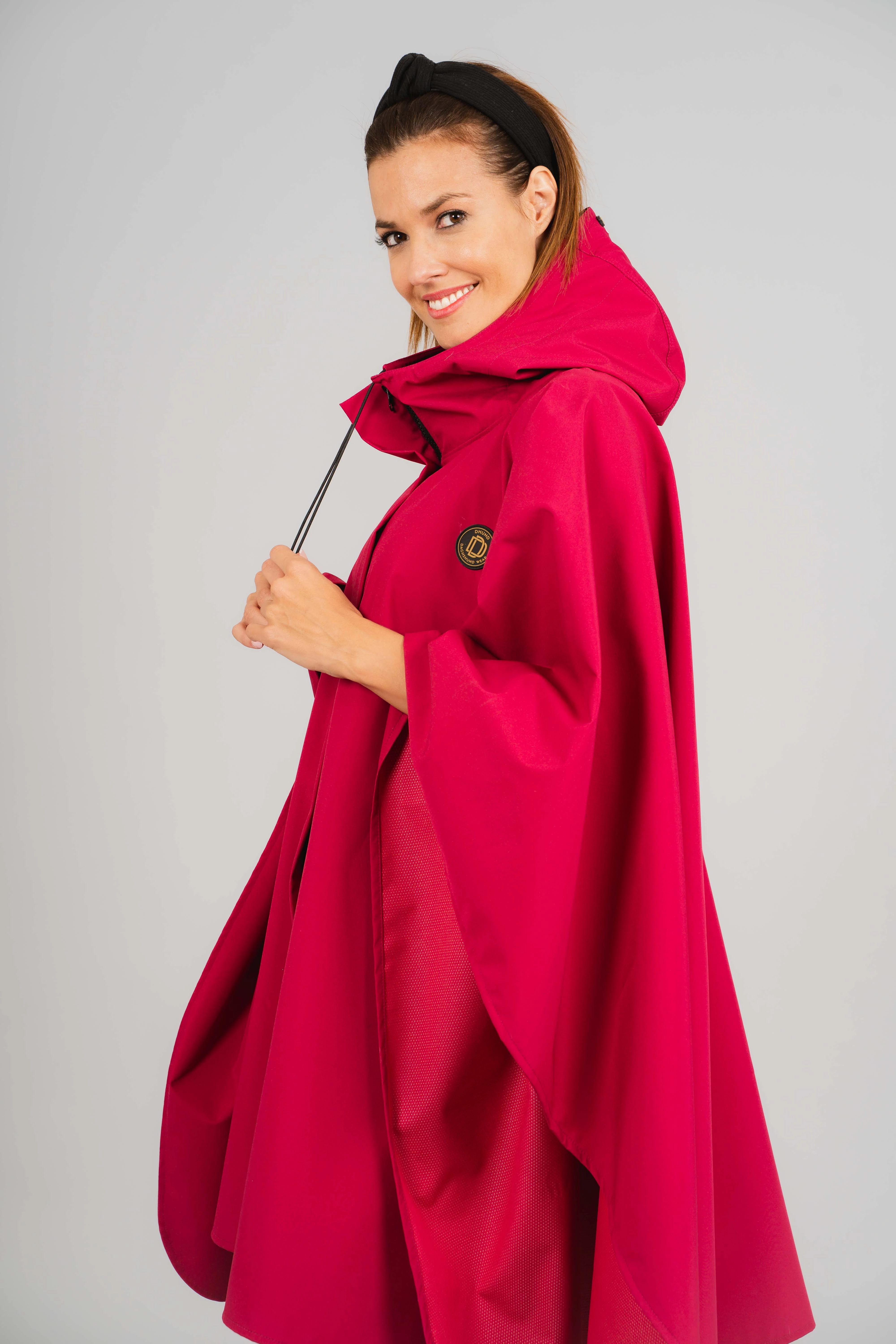 Női DHUNDWEAR tavaszi-nyári kapucnis esőkabát, esőponcsó 100%-ig vízálló anyagból. Cipzáras rögzítéssel zárható, kapucnija zsinóros megoldással szabályozható. Az elején kontrasztos DHUNDWEAR logó teszi teljessé a stílusos dizájnt. Szabása egyméretes, így az XS mérettől az XXL méretig viselhető.